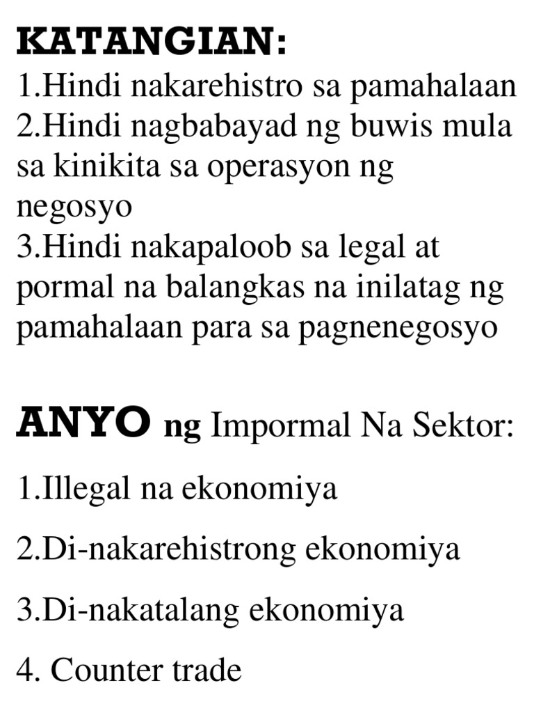 Impormal na Sektor By lesliemarilegaspi Updated. Ito ay isang ekonomiyang nasa labas ng pormal na sektor. At the moment Powtoon presentations are unable to play on.