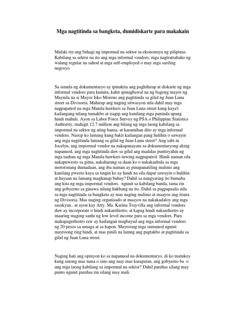 Dokumentaryo na impormal na sektor. Panganib sa Impormal na Sektor. Pagiging impormal ng mga hanapbuhay sa pormal na sektor. Up to 3 cash back dokumentong kailangan sa pagsasagawa ng mga gawaing pang-.