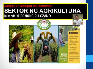 Ekonomiks000 Intro008 Kahulugan ng Agrikultura02. Sektor ng Agrikultura l Ekonomiks 9. Sektor ng Agrikultura Ang agrikultura ay isang agham sining at gawain ng pagpoprodyus ng pagkain at hilaw na mga produkto na tumutugon sa pangangailangan ng tao.